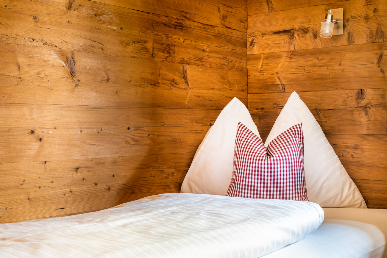 Our third appartement in the farmhouse offers a cozy living room with a kitchen and an extra bed, one double room with a sofa bed and one double room with two seperate beds. There is also an entrance hall with coat rack and shower / WC.